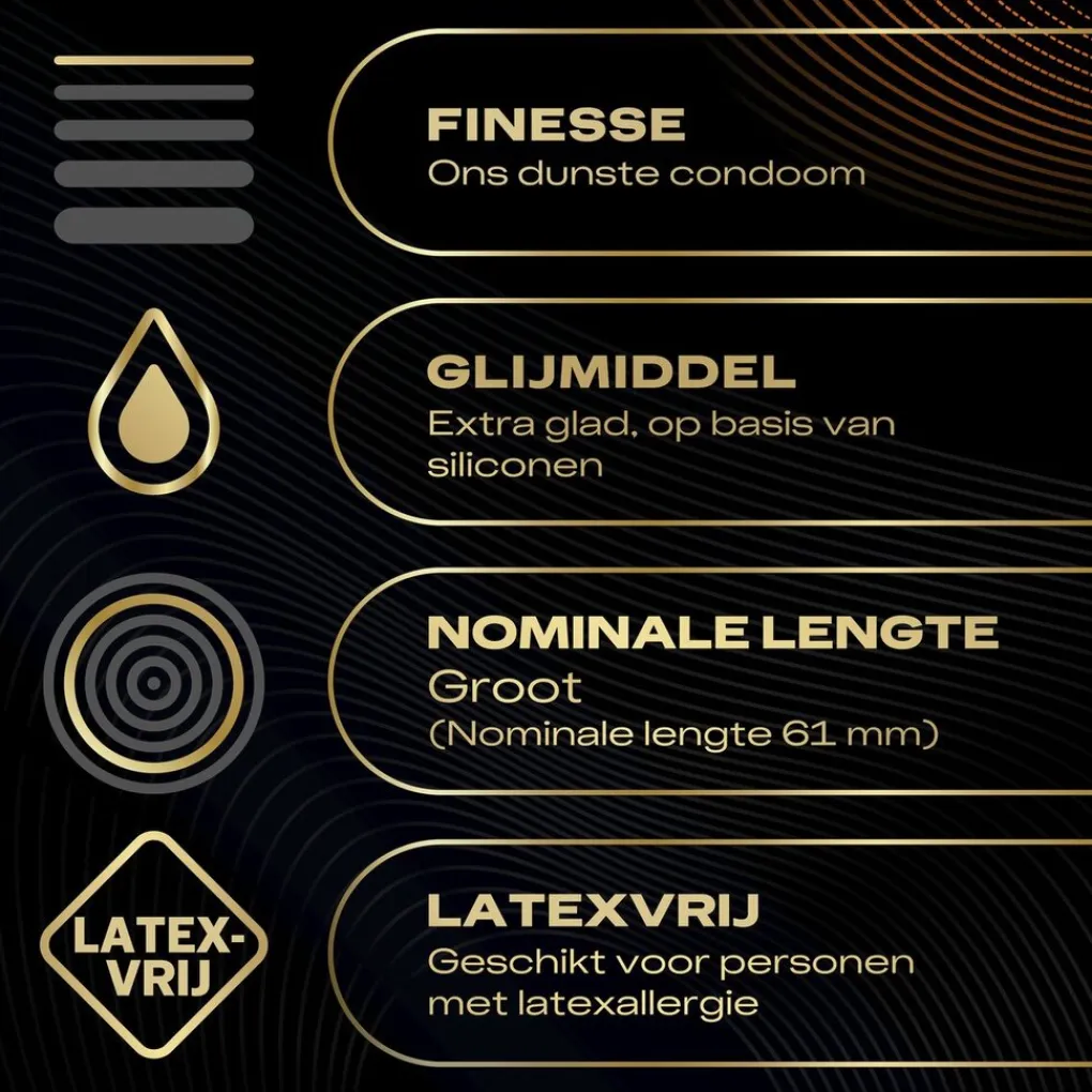 De condooms zijn ultralubricated en op siliconenbasis, Dit condoom is niet compatibel met glijmiddelen op waterbasis, omdat deze het condoom kunnen beschadigen. Gebruik alleen glijmiddelen op siliconenbasis.
