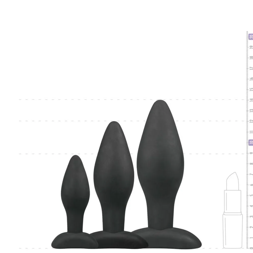 Geniet van een heerlijke anale ervaring met dit setje van drie buttplugs. Ze hebben alledrie een andere maat, dus je kunt rustig beginnen en geleidelijk verder gaan tot de grootste plug. Ze zijn gemaakt van materialen van goede kwaliteit en zijn heel comfortabel. Het stevige ontwerp in combinatie met een lichte flexibiliteit zorgt voor een comfortabel en stimulerend gebruik. Met dit setje ben je binnen de kortste keren een expert in het anale spel!
