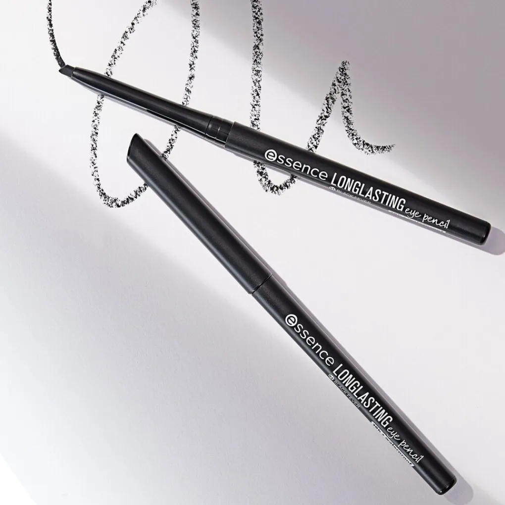 Voor een mooie en intense oogopslag teken je een zwart lijntje langs je wimperrand met Essence 01 Black Fever Long-Lasting Oogpotlood.