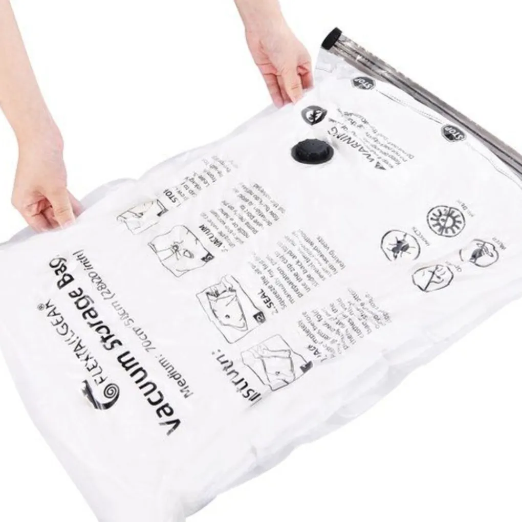 In een paar tellen 80% aan ruimte besparen in je kast, tas of koffer? Met de vacuüm opbergzakken van Flextail Gear wordt dit realiteit! De vacuümzakken van Flextail Gear zijn van stevig plastic gemaakt waardoor de zakken goed herbruikbaar zijn.De vacuüm opbergzakken set wordt geleverd met 4 vacuümzakken van 70x50CM.