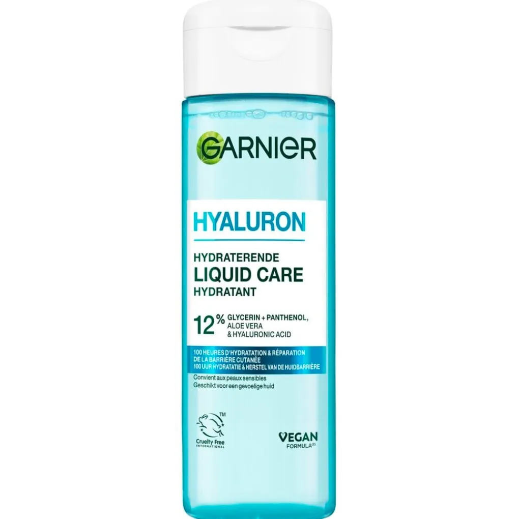 De Garnier Hyaluron Hydraterende Liquid Care is een intens hydraterende verzorging die 12% glycerine en panthenol met aloë vera en hyaluronzuur combineert om je huid 100 uur lang te hydrateren.