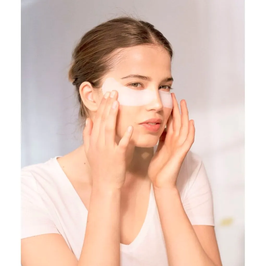 • Stap 3. Intrekken: strijk ze glad om voor contact met je huid te zorgen en ze op de oogcontouren te plaatsen. Laat vijtien minuten intrekken.