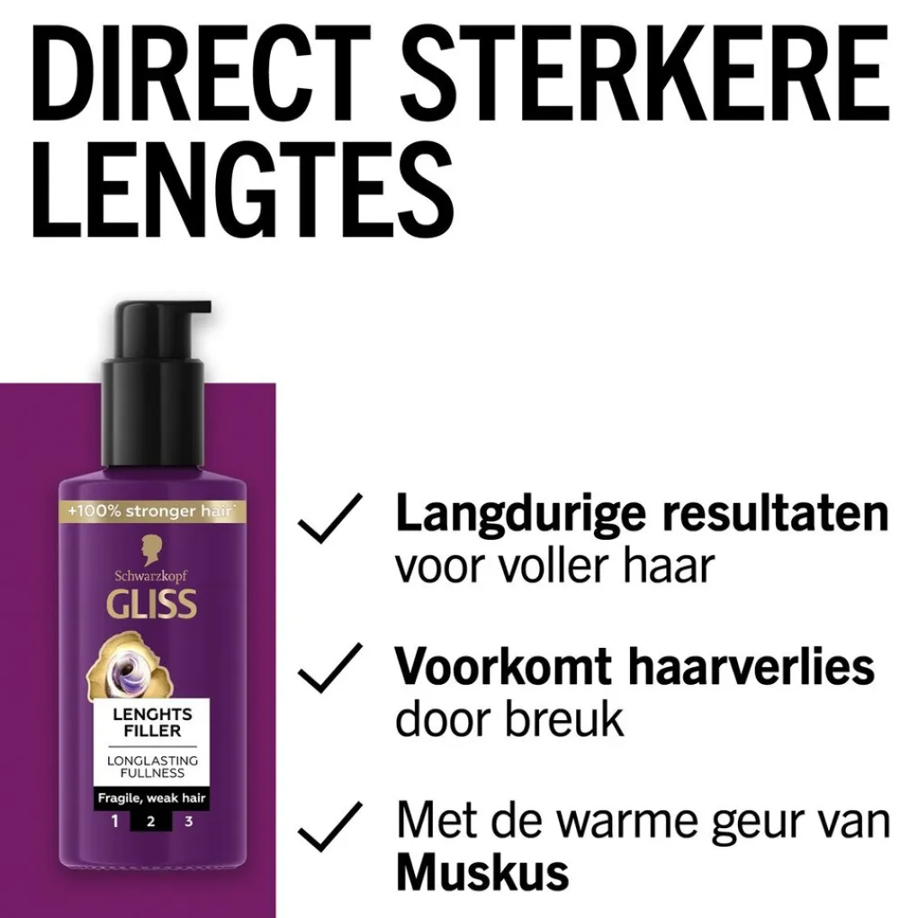 Het serum heeft een Gliss Care Level 2 voor medium verzorging, met een uitgebalanceerde samenstelling van voedende ingrediënten.