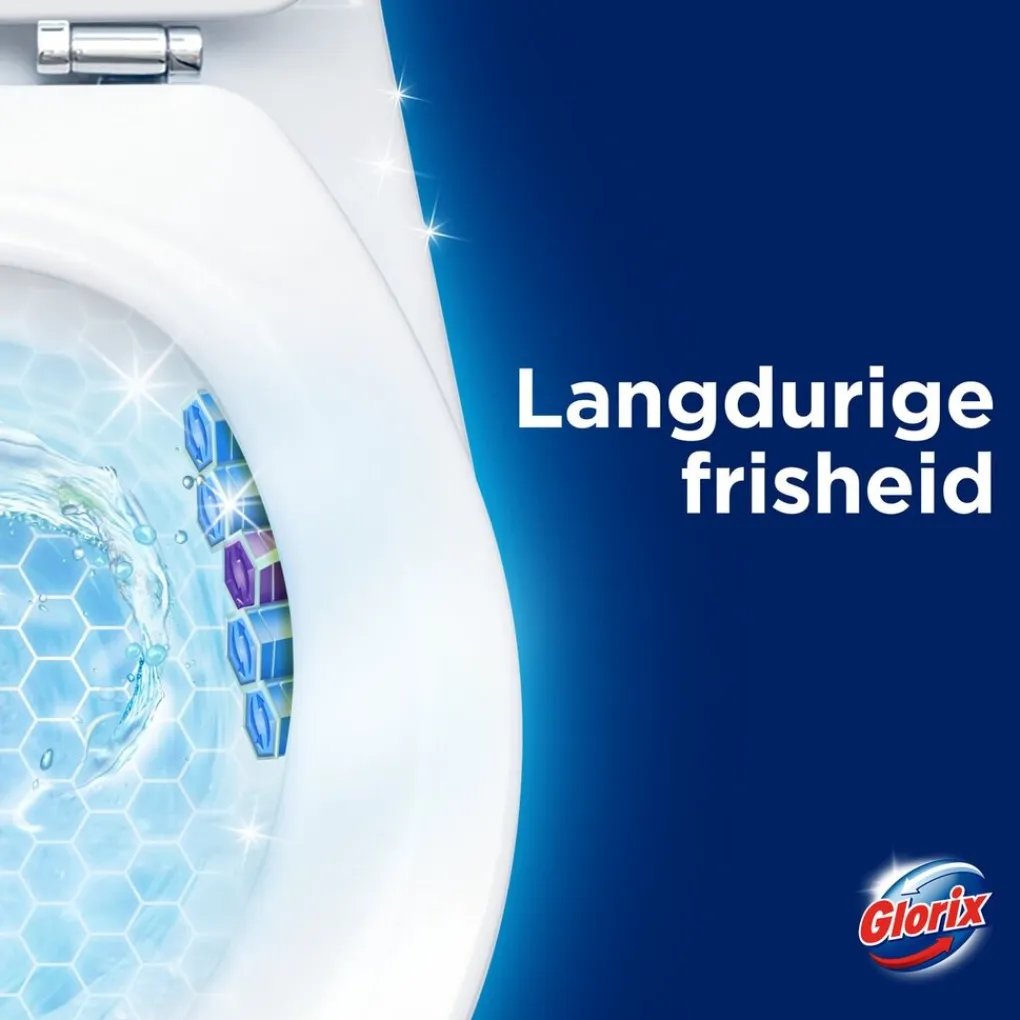 Het Glorix Hygiëne Toiletblok geeft elke spoelbeurt de kracht van Glorix Power 5, tot wel 300 spoelbeurten lang.