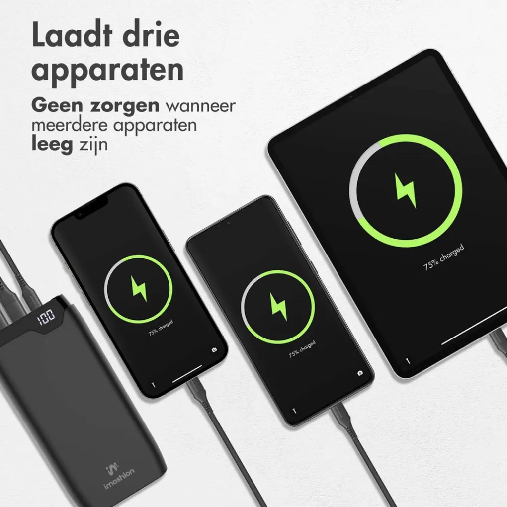 Ben jij op zoek naar een krachtige powerbank waarmee je gemakkelijk drie apparaten tegelijkertijd oplaadt? Ga dan voor de Powerbank 20.000 mAh van imoshion!