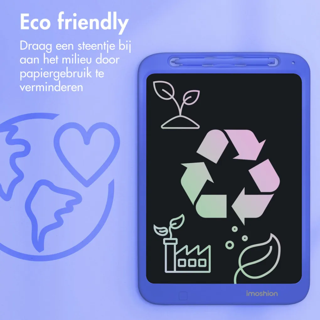 Met deze tekentablet geef je niet alleen je kind een goed gevoel, je draagt ook je steentje bij aan een beter milieu. Je kind heeft namelijk nooit meer papier nodig om op te tekenen! Red een boom, ga voor de imoshion LCD Tekentablet.