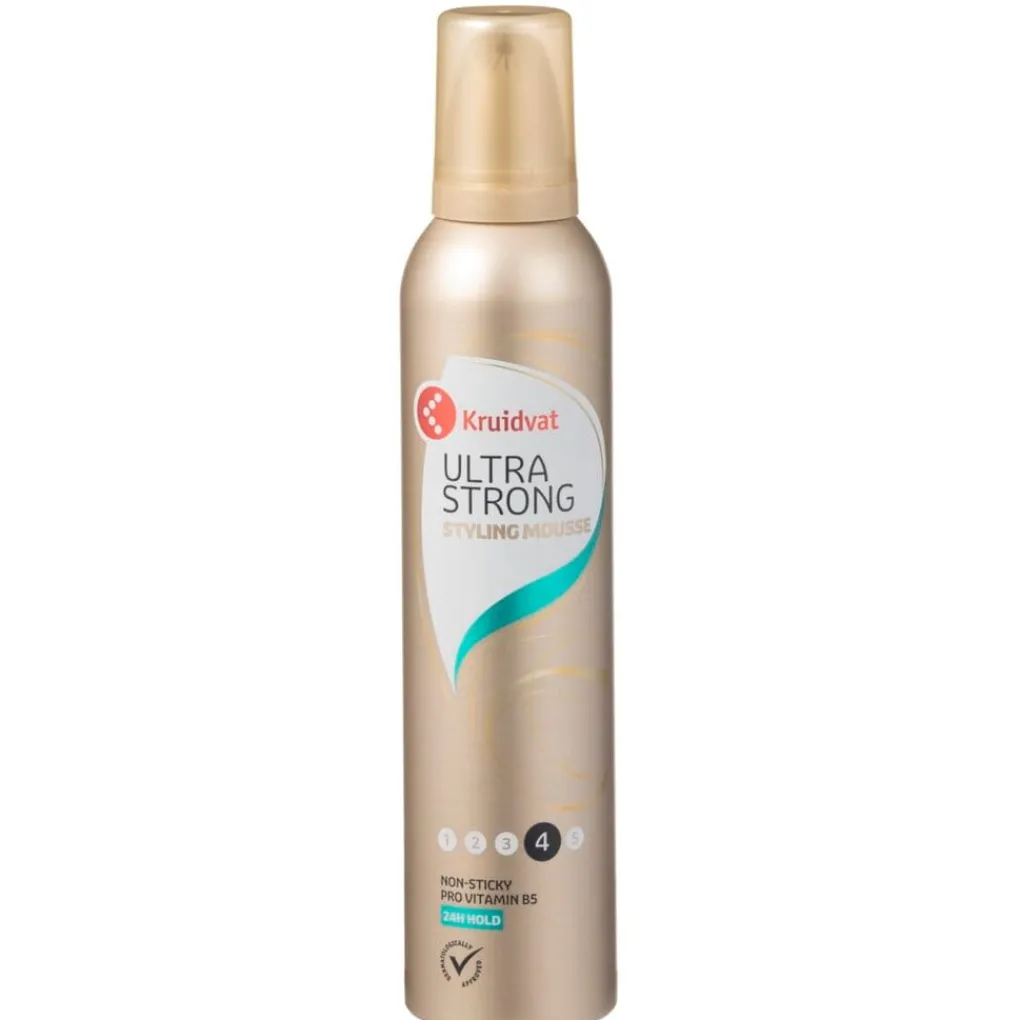 Kruidvat 4 Ultra Strong Styling Mouse geeft tot 24 uur ultrasterke versteviging, extra volume en veerkracht zodat je haar de hele dag in model blijft. Provitamine B5 beschermt je haar tegen uitdrogen en versterkt de natuurlijke glans.
