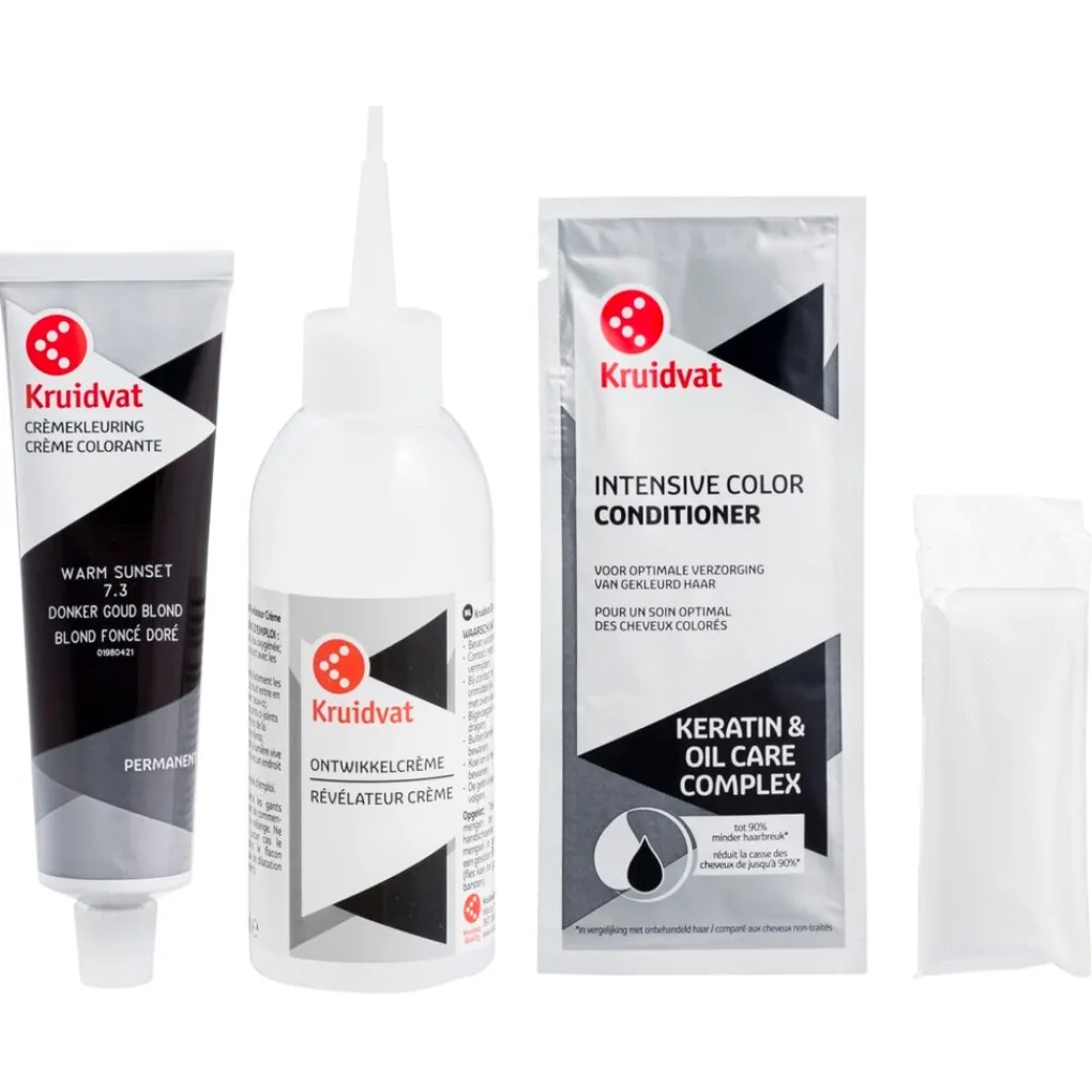 De meegeleverde Kruidvat Intensive Color Conditioner is speciaal ontwikkeld voor de verzorging van pas gekleurd haar. De conditioner bevat keratine en een complex van verzorgende macadamia-, amandel en abrikozenpitolie die je haar voeden en de kleur langer vasthouden.