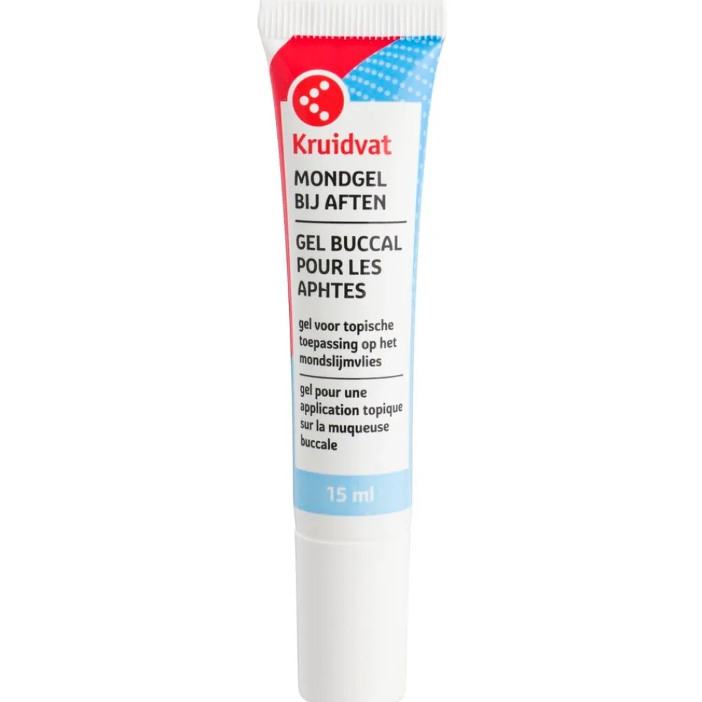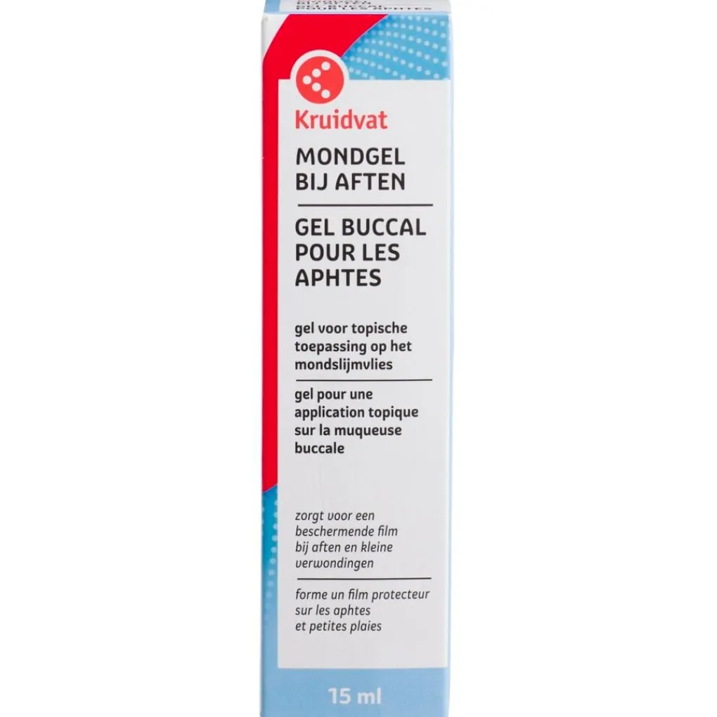 zorgt voor een beschermende film bij aften en kleine verwondingen. # Kruidvat Mondgel bij Aften is een medisch hulpmiddel in de vormvan een coatinggel die wordt gebruikt om een beschermende film te vormen op het oppervlak van het mondslijmvlies, waardoor het gebied met een erosie of een zweer wordt geïsoleerd van irriterende stoffen. Het verlicht tijdelijk symptomen als branderigheid en pijn veroorzaakt door aften en bevordert het juiste epitheelvernieuwingsproces in de mondholte.
