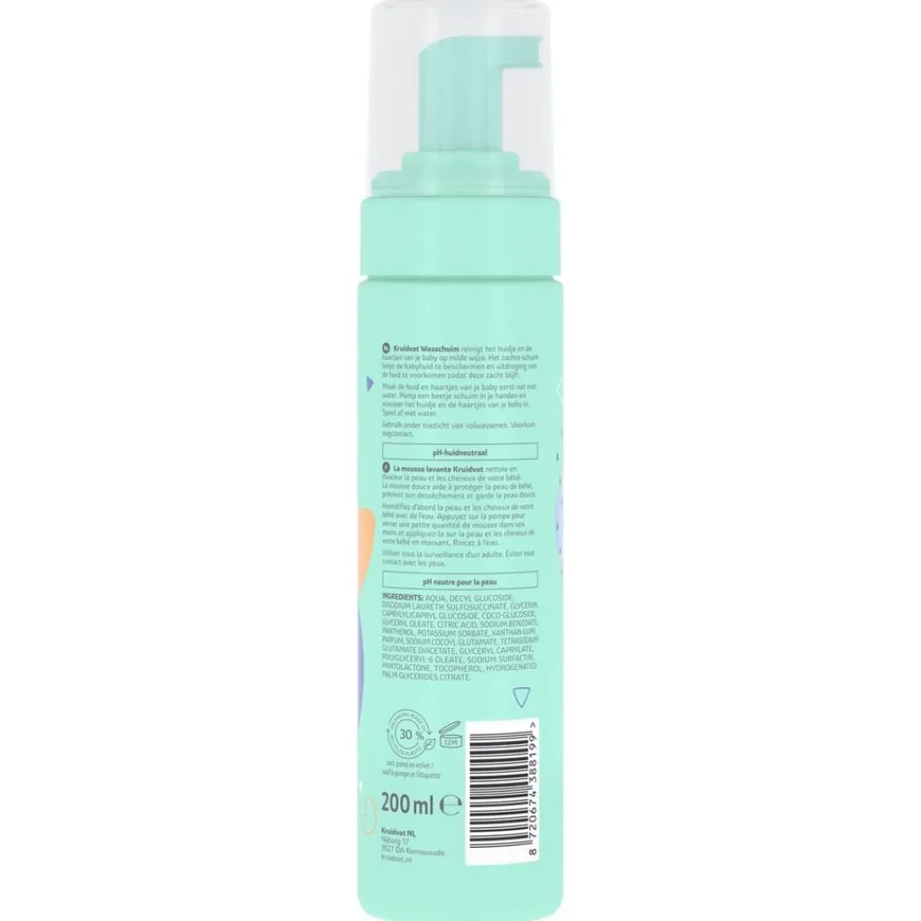 Het Kruidvat Baby Wasschuim reinigt het huidje en de haartjes van je baby op milde wijze. De zachte foam is pH-huidneutraal. Het verzorgt en verzacht het babyhuidje en helpt de huid te beschermen tegen uitdroging.