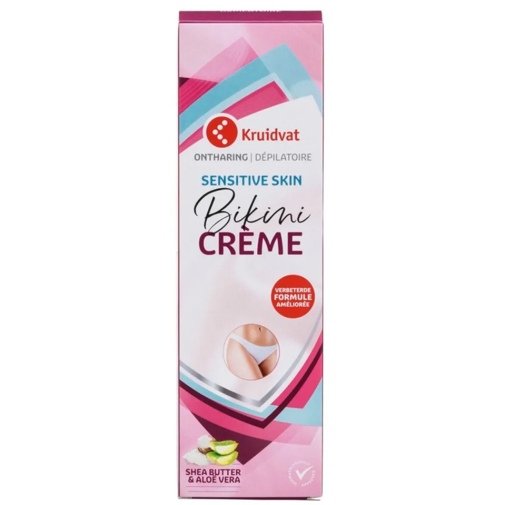 Onthaar mild, maar effectief je gevoelige bikinilijn met de Kruidvat Bikini Ontharingscrème voor de Normale en Gevoelige Huid. Je haartjes worden voor langere tijd verwijderd en je hebt minder snel last van stoppeltjes.