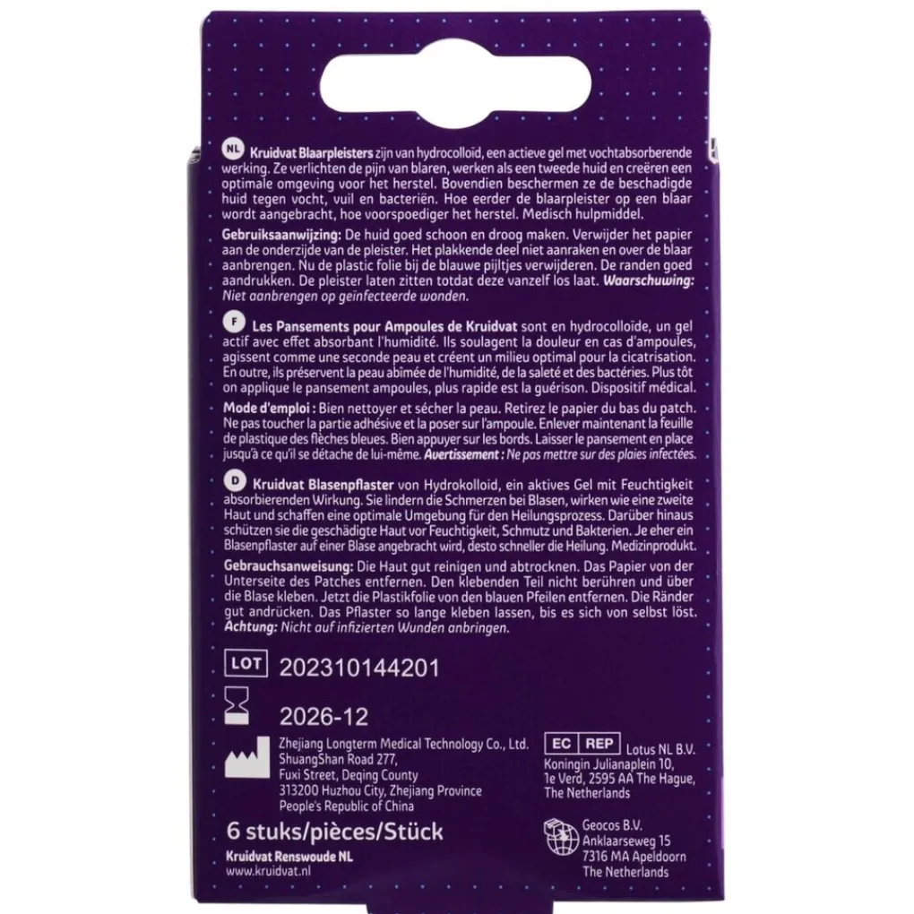Kruidvat Blaarpleisters bestaan uit een actieve gel met absorberende werking. Ze verlichten de pijn van blaren, werken als een tweede huid en creëren een optimale omgeving voor herdstel. Bovendien beschermen ze de beschadigde huid tegen vocht, vuil en bacteriën. Hoe eerder de blaarpleister op een blaar wordt aangebracht, hoe voorspoediger het herstel.
