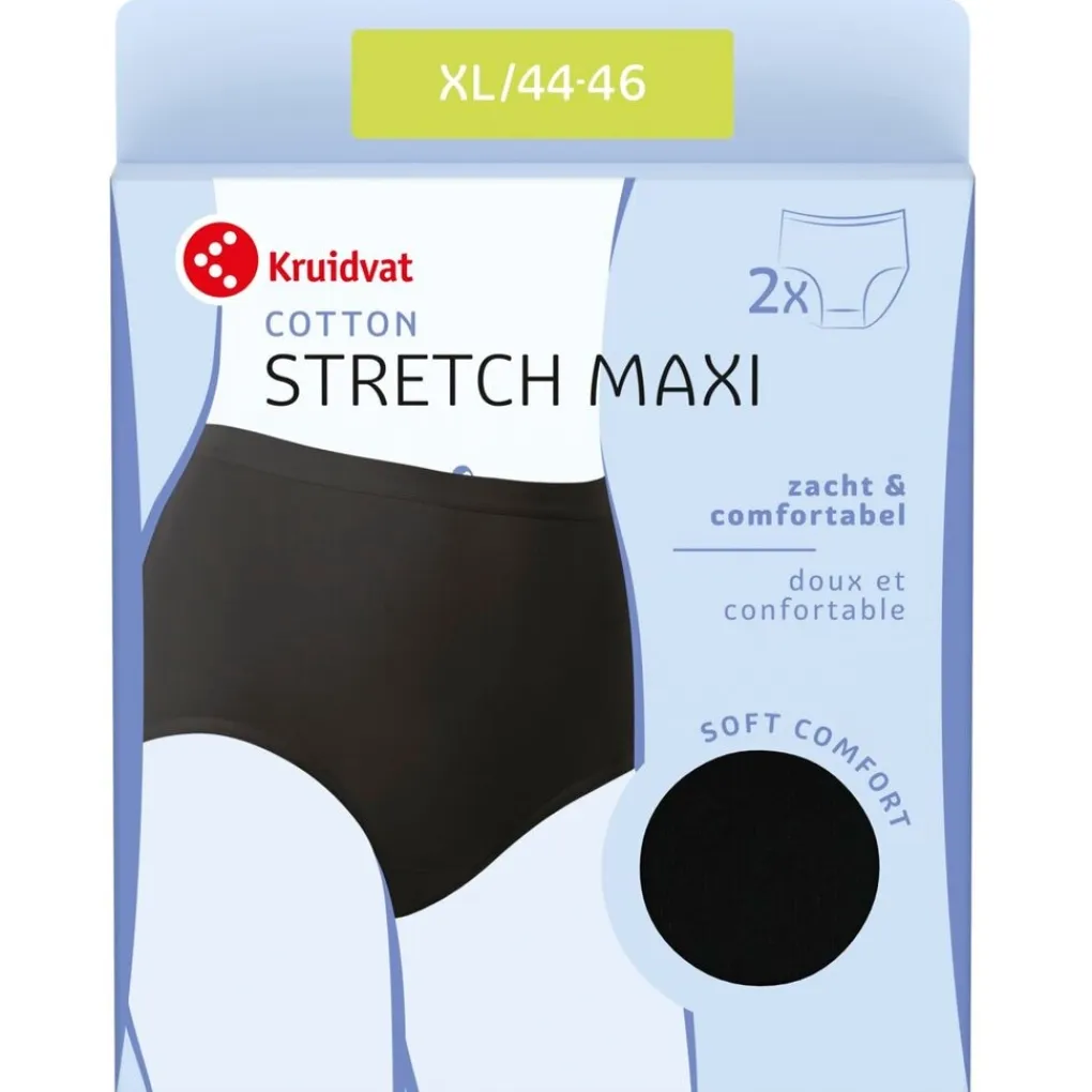 De Kruidvat Cotton Stretch Maxi Damesslip heeft een hoge taille en is volledig bedekkend voor optimale ondersteuning. De slip heeft een zacht elastiek.