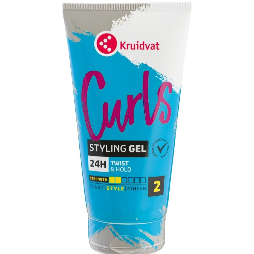 Kruidvat Curls Styling Gel versterkt de krul en geeft tot 24 uur lang natuurlijk uitziende fixatie. De verzorgende gel beschermt en hydrateert je haar voor glanzende en veerkrachtige krullen. De gel verzwaart je krullen niet.