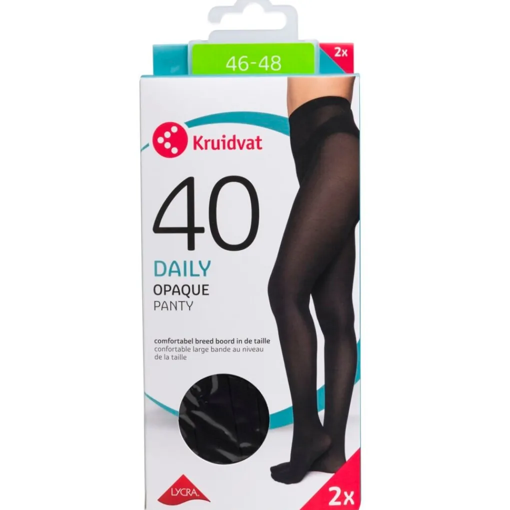 De Kruidvat Daily Opaque 40 Den Panty is een matterende, niet doorschijnende panty die is verstevigd met Lycra-vezel voor een uitstekende pasvorm. De panty heeft een extra breed en comfortabel boord in de taille.