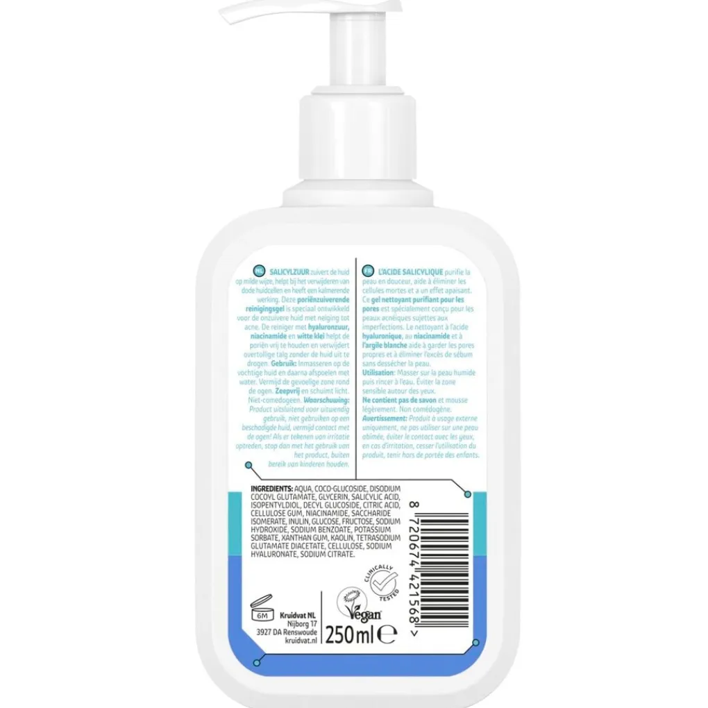 De Kruidvat Derma Poriënzuiverende Reinigingsgel is speciaal ontwikkeld voor je onzuivere huid met neiging tot acne.