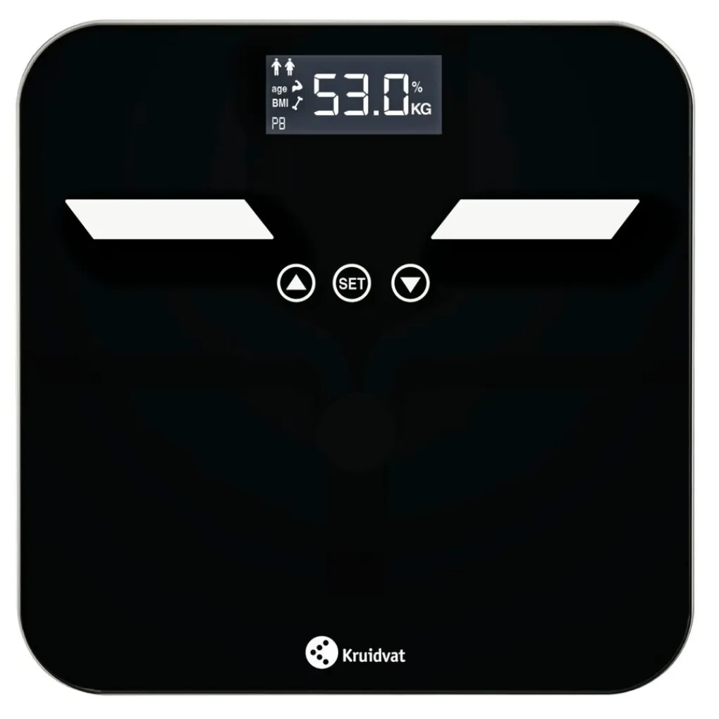 De Kruidvat Diagnostische Weegschaal is multifunctioneel. Het apparaat meet je gewicht, lichaamsvet- en vocht, spier- en botmassa, BMI en de BMR door simpelweg op de weegschaal te stappen.
