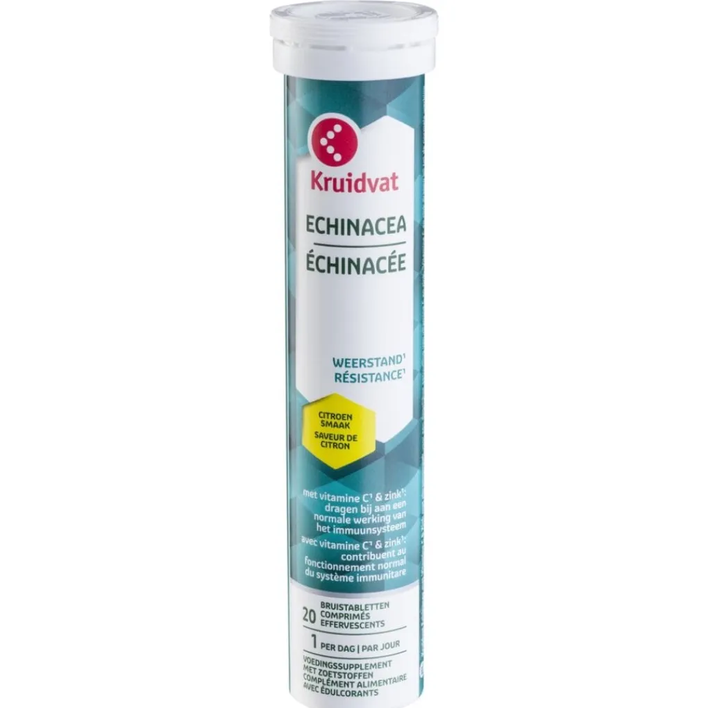 Kruidvat bruistabletten echinacea met vitamine C & zink, voedingssupplement met zoetstoffen, met citroensmaak, 20ST