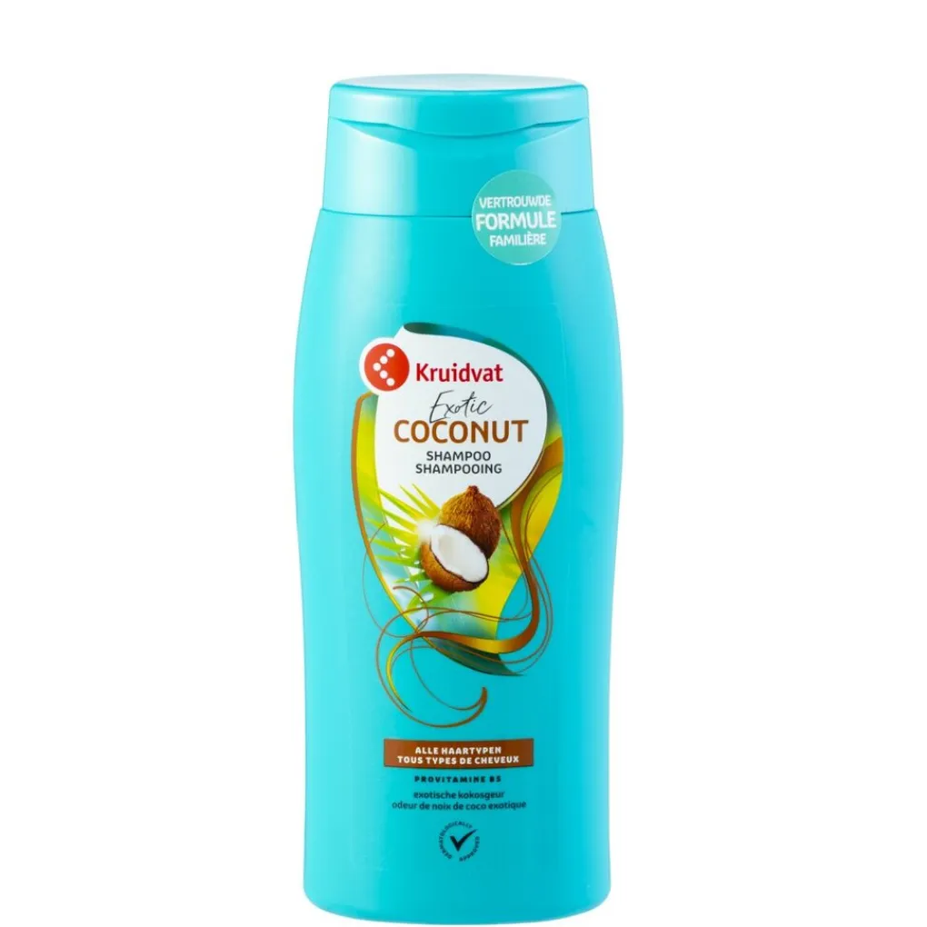 Kruidvat Exotic Coconut Shampoo is dermatologisch getest, pH-huidneutraal en vegan. De fles is gemaakt van gerecycled plastic en 100% recyclebaar.