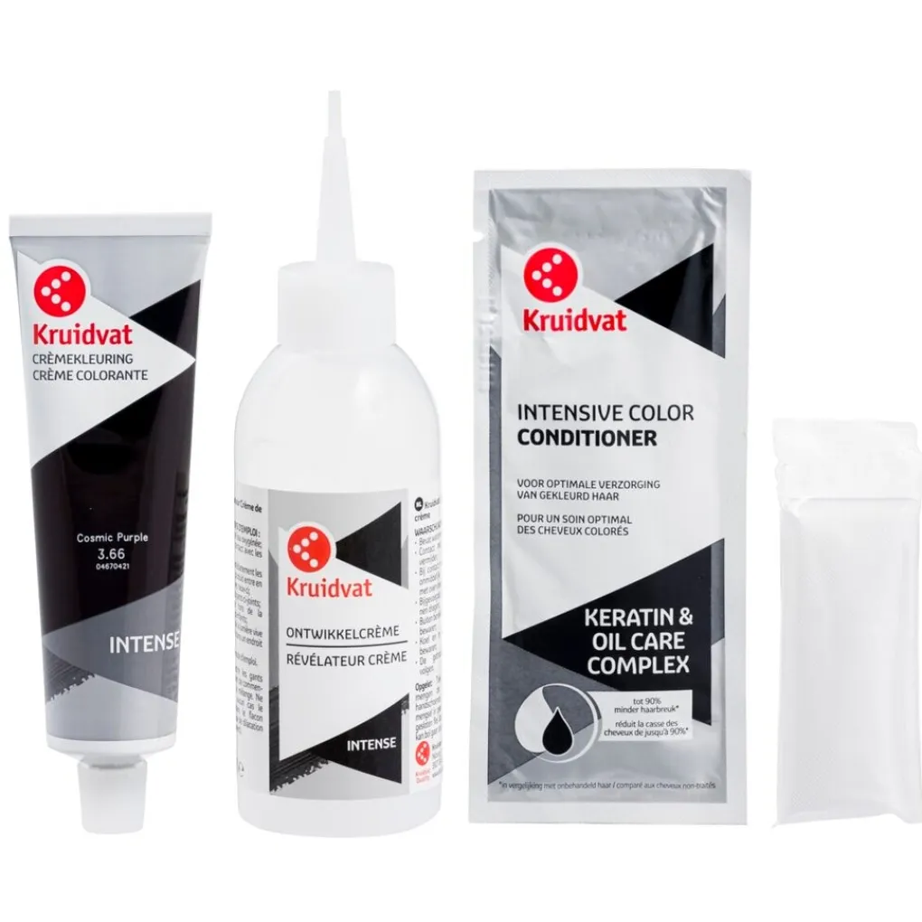 De meegeleverde Kruidvat Intensive Color Conditioner is speciaal ontwikkeld voor de verzorging van pas gekleurd haar. De conditioner bevat keratine en een complex van verzorgende macadamia-, amandel en abrikozenpitolie die je haar voeden en de kleur langer vasthouden.