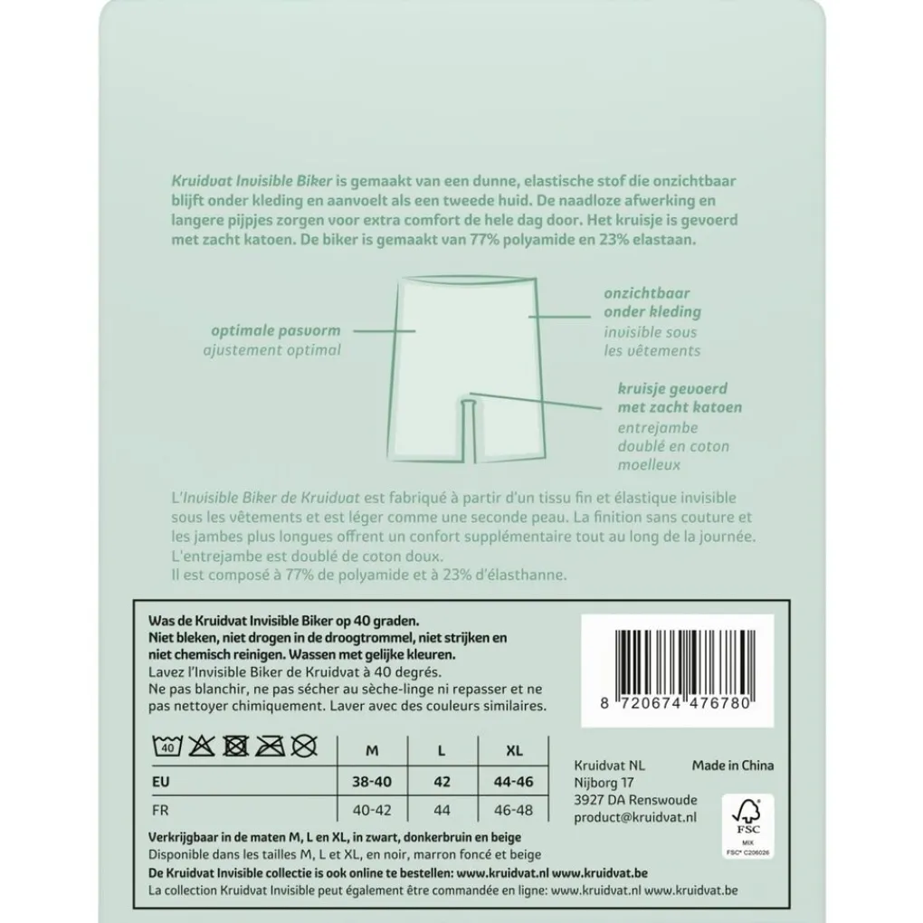 De Kruidvat Invisible Biker Damesshort is gemaakt van een dunne, elastische stof die onzichtbaar blijft onder kleding en aanvoelt als een tweede huid. De naadloze afwerking en langere pijpjes zorgen de hele dag voor extra comfort.