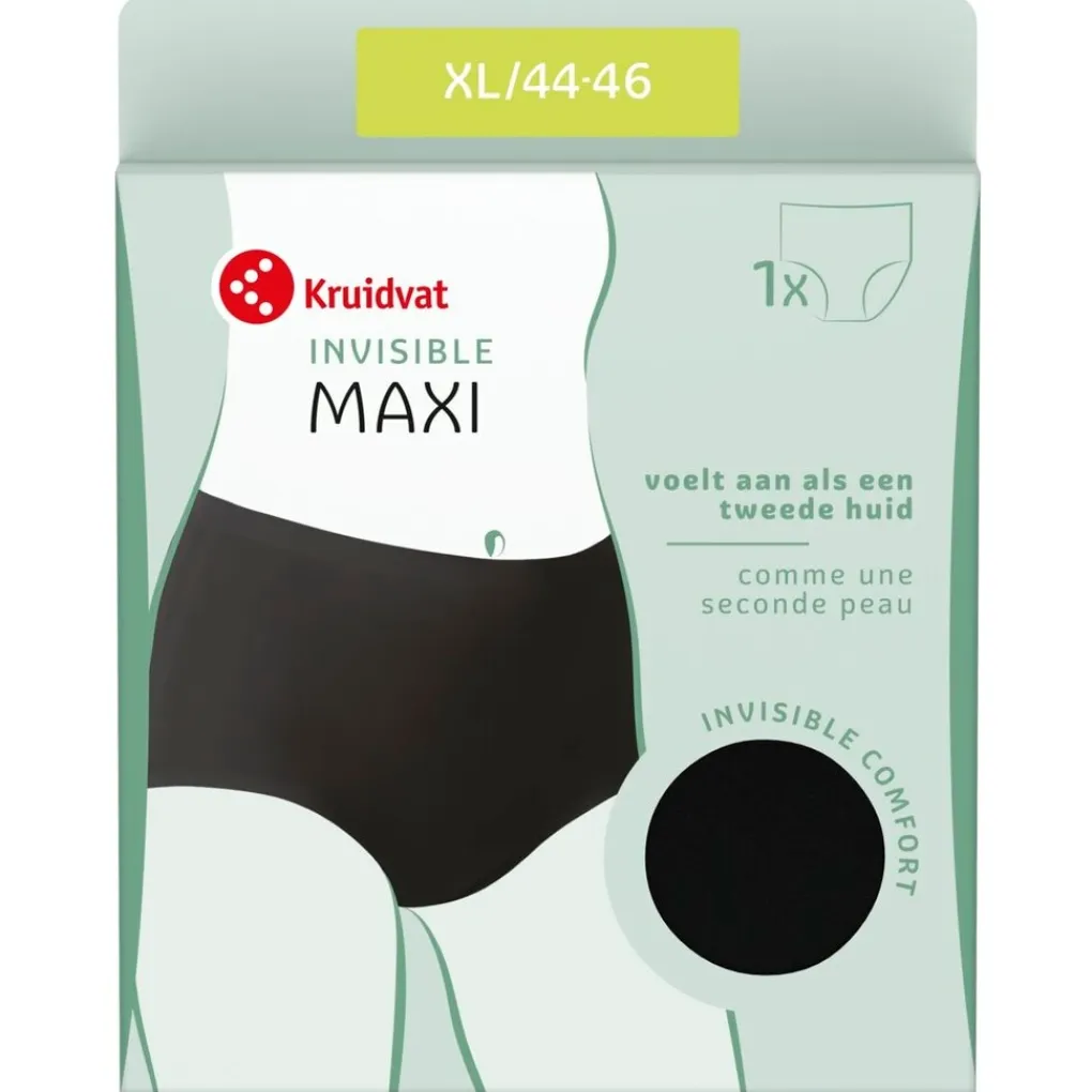 De Kruidvat Invisible Maxi Damesslip heeft een hoge taille en is volledig bedekkend voor optimale ondersteuning. De maxi is gemaakt van een dunne, elastische stof die onzichtbaar blijft onder kleding en aanvoelt als een tweede huid.