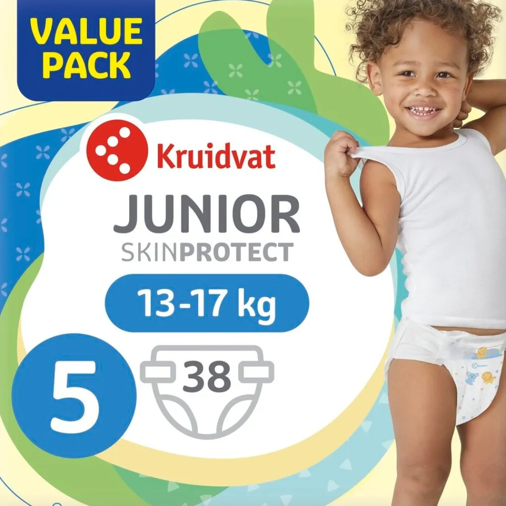Wist je dat, één op de twee baby’s in Nederland een luier draagt van Kruidvat?* Als je kiest voor Kruidvat Junior Maat 5 Luiers Valuepack, kies je voor uitstekende kwaliteit en zachtheid, voor een Kruidvat-prijs.