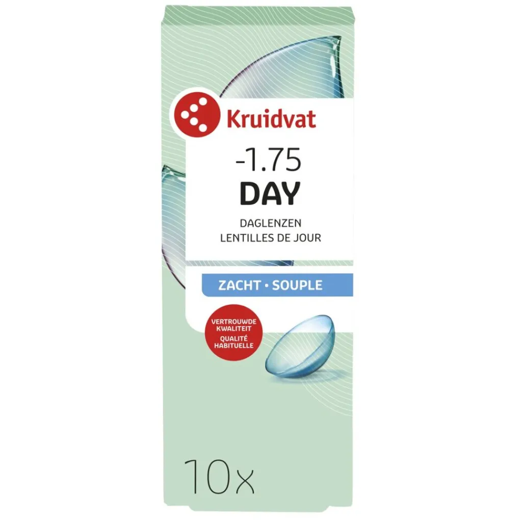 Start elke dag met schone zachte lenzen. Kruidvat Opticare -1.75 Zachte Daglenzen zijn ideaal als je slechts af en toe lenzen draagt. Bijvoorbeeld tijdens het sporten of wanneer je op vakantie gaat.