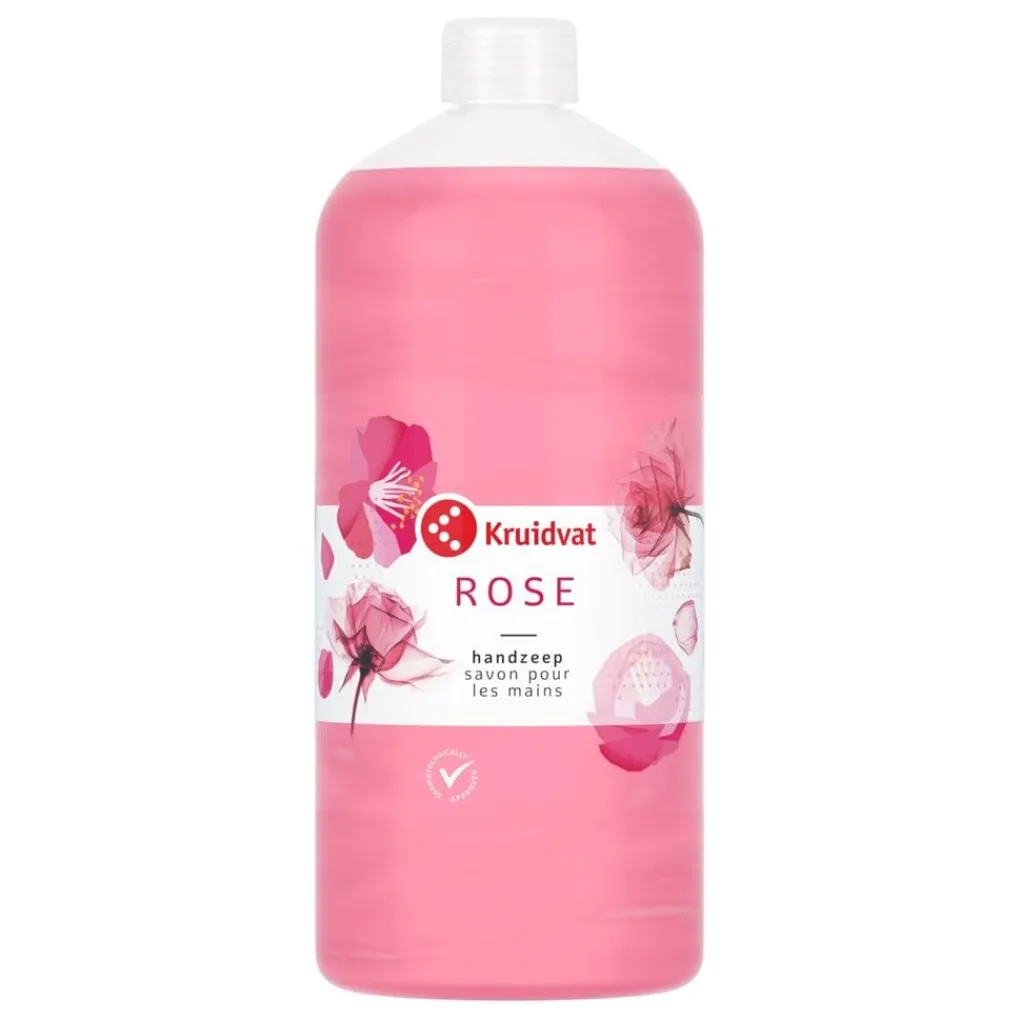Kruidvat Rose Handzeep reinigt je handen en helpt ze tegelijkertijd zacht te houden. De handzeep, met rozenextract, laat jehanden bovendien heerlijk ruiken. De handzeep is pH-huidneutraal. Voorkom oogcontact.