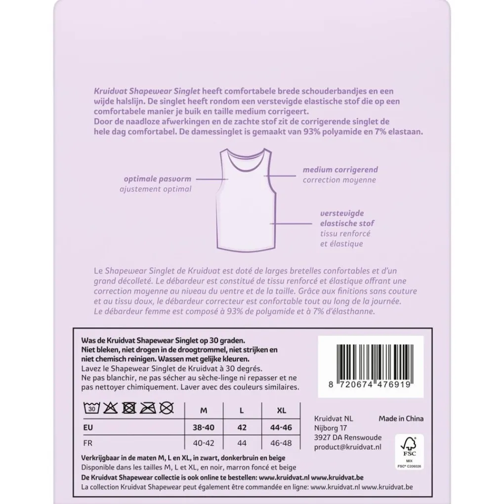 De Kruidvat Shapewear Damessinglet heeft comfortabele brede schouderbandjes en een wijde halslijn. De singlet heeft rondom een verstevigde elastische stof die op een comfortabele manier je buik en taille medium corrigeert.