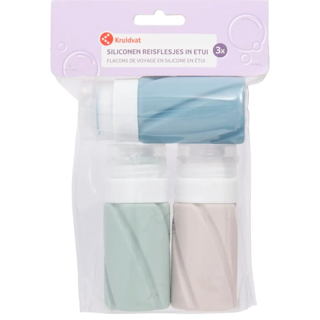 Kruidvat Siliconen Reisflesjes in Etui zijn ideaal voor het meenemen van je essentiële vloeistoffen onderweg. Houd vloeistoffen veilig en georganiseerd met deze siliconen reisflesjes in etui. De set bestaat uit drie flesjes van 60 ml.