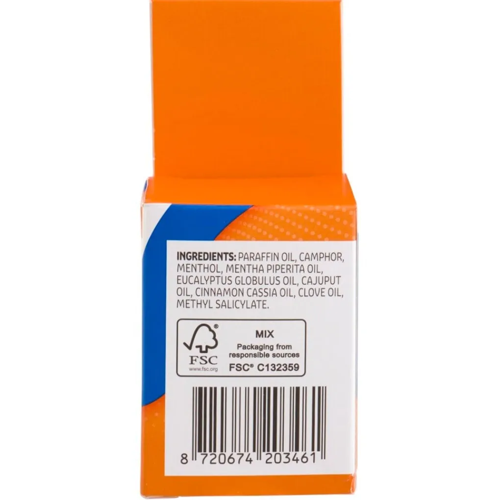 INGREDIENTS: PARAFFIN OIL, CAMPHOR, MENTHOL, MENTHA PIPERITA OIL, EUCALYPTUS GLOBULUS OIL, CAJUPUT OIL, CINNAMON CASSIA OIL, CLOVE OIL, METHYL SALICYLATE.