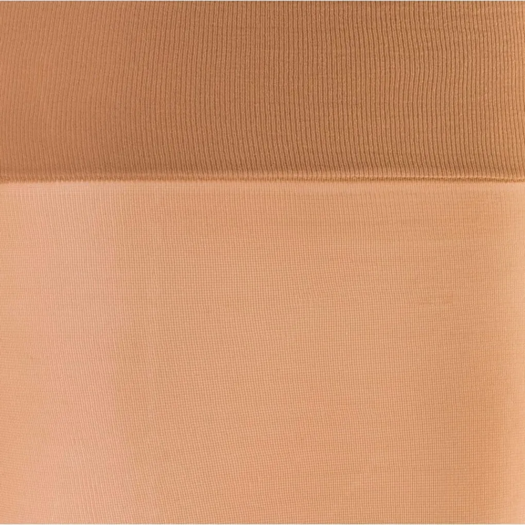 De huidskleurige panty is gemaakt van 90% polyamide en 10% Lycra-elastaan.