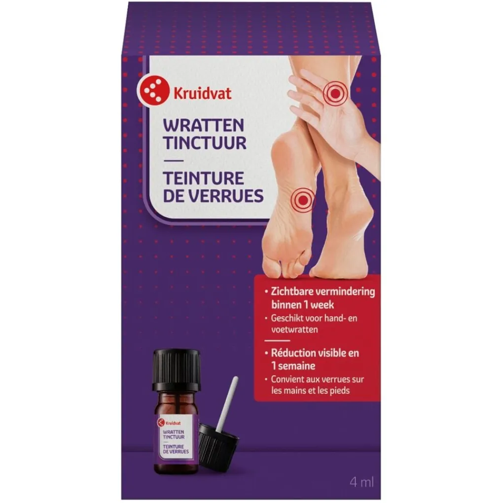 De Kruidvat Wrattentinctuur is geschikt voor hand- en voetwratten.