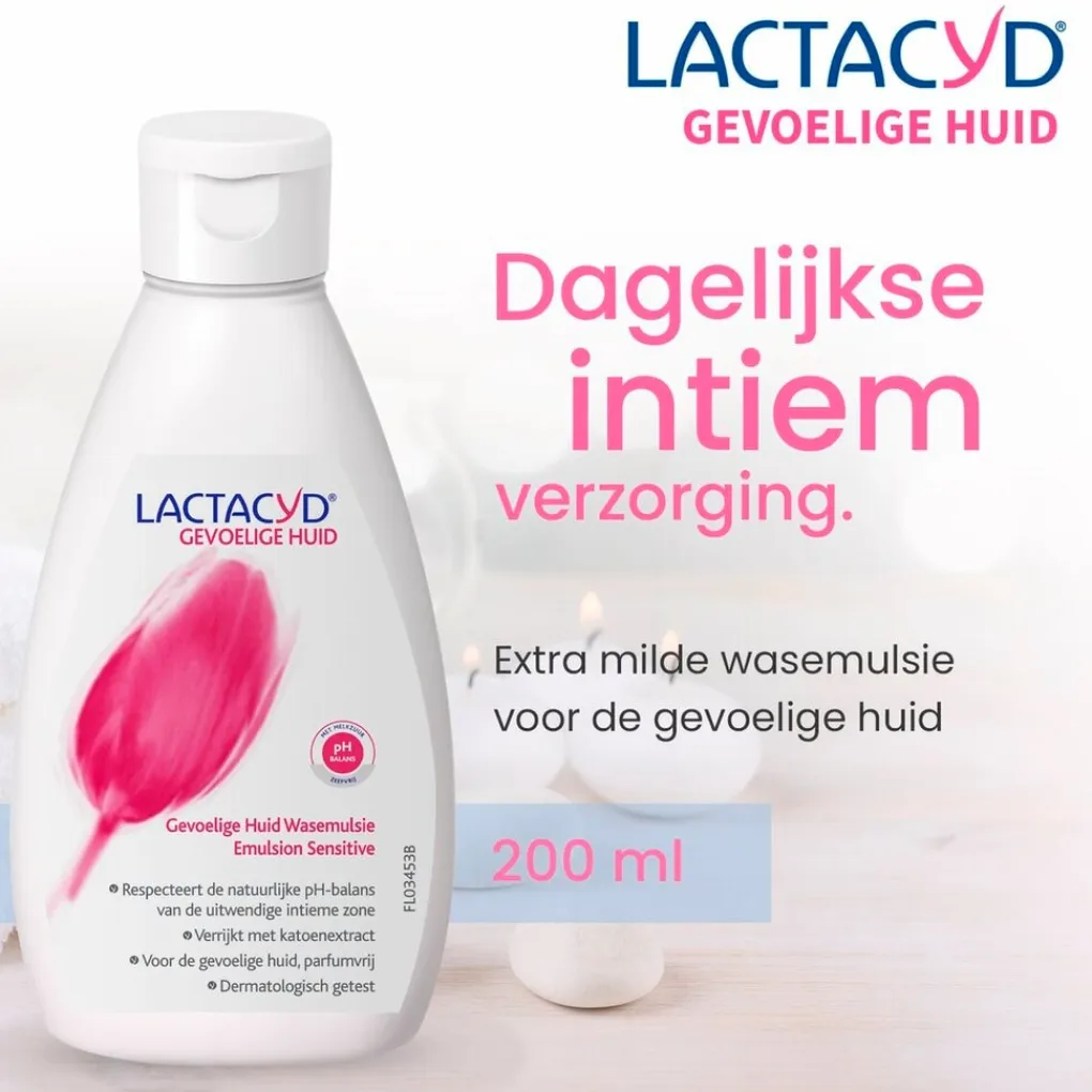 Beperk intiem ongemak met de Lactacyd Wasemulsie voor de Gevoelige Huid. De parfum- en zeepvrije wasemulsie werkt verzachtend voor de gevoelige vagina en zorgt voor een zacht en zuiver gevoel.