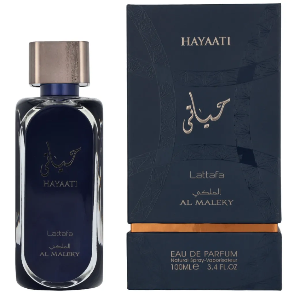 Ervaar de koninklijke allure van Hayaati Al Maleky van Lattafa, een complexe geur met een kruidige opening van nootmuskaat en roze peper, een rijk hart van houtnoten en wierook, en een warme basis van musk en amber.