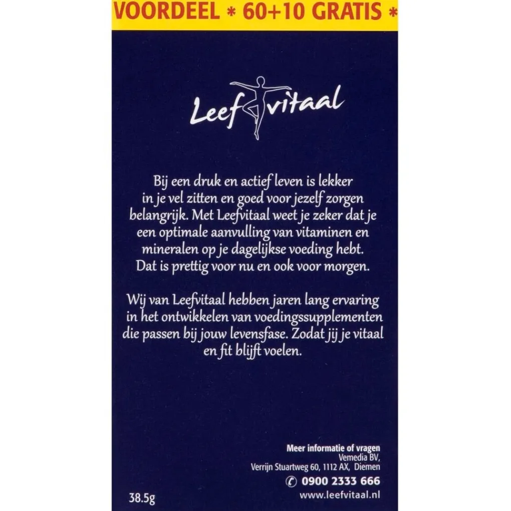 Bij een druk en actief leven is lekker in je vel zitten en goed voor jezelf zorgen belangrijk. Met Leefvitaal weet je zeker dat je een optimale aanvulling op je dagelijkse voeding hebt. Dat is prettig voor nu en voor morgen. Leefvitaal heeft jarenlang ervaring in het ontwikkelen van voedingssupplementen die passen bij je levensfase.