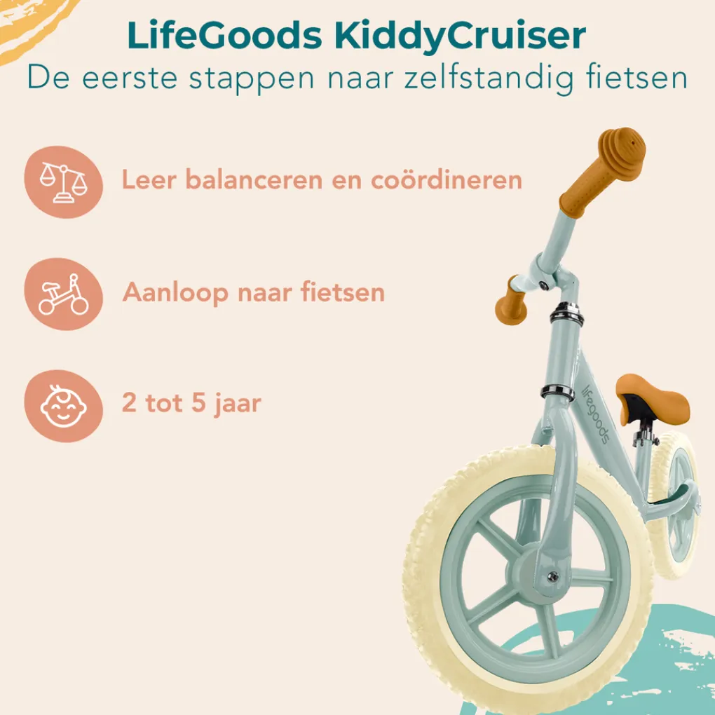 Het merk achter de fiets: LifeGoods LifeGoods staat bekend om zijn kwalitatieve, innovatieve en gebruiksvriendelijke producten voor het hele gezin. De KiddyCruiser is geen uitzondering. De LifeGoods KiddyCruiser geeft een wereld vol avonturen en ontdekkingen. Waar wacht je nog op? Stap in de wereld van eindeloos plezier en leerzame avonturen met de KiddyCruiser!