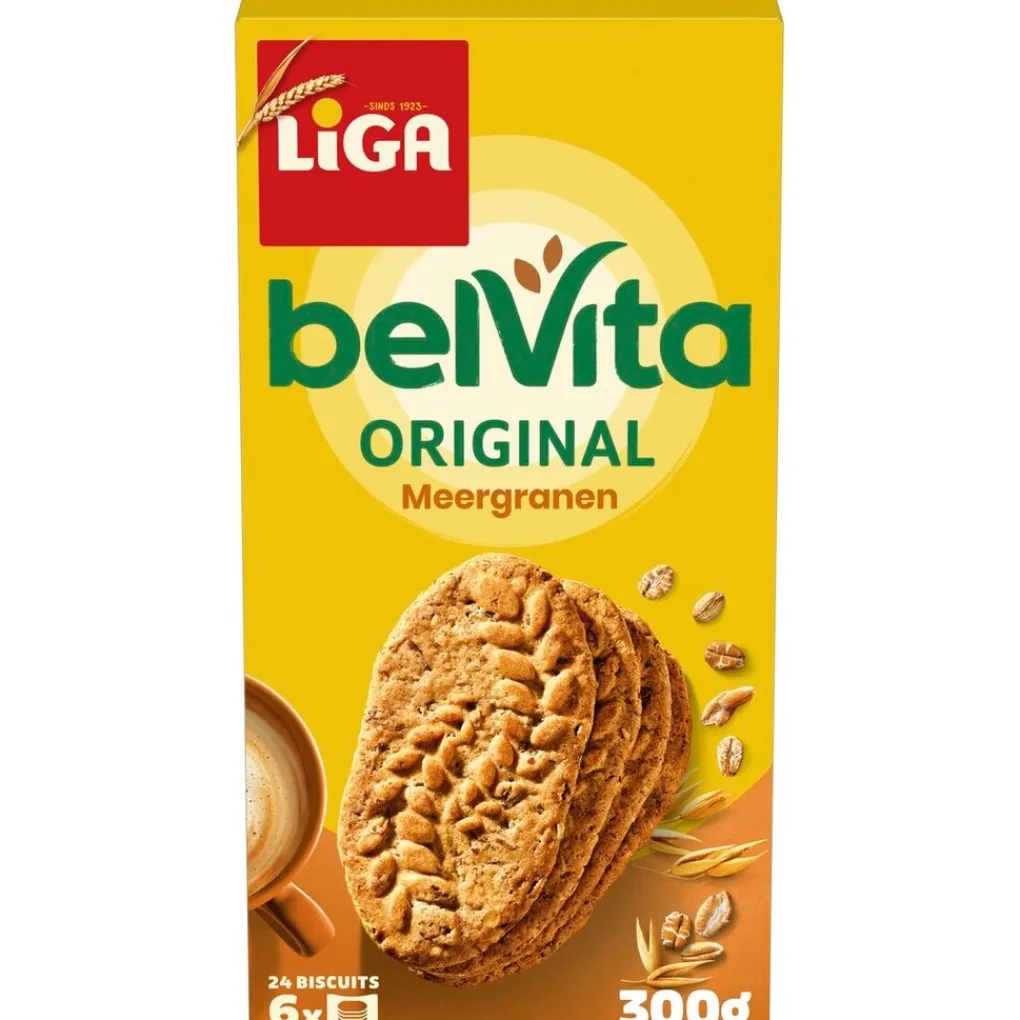 Begin je dag goed met Liga Belvita Meergranen Biscuits. De biscuits met vijf soorten volkorengranen geven je energie voor de hele ochtend.