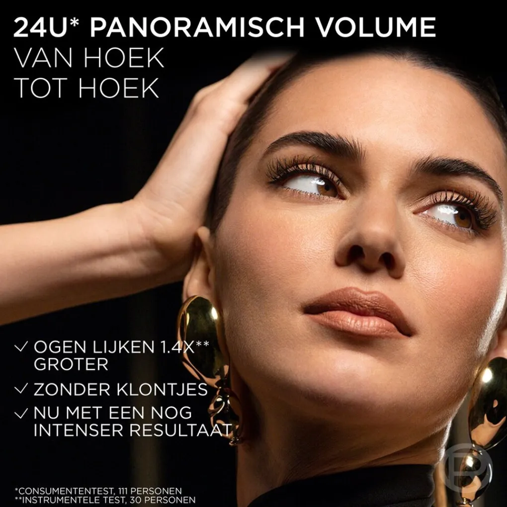 Kies voor de L’Oréal Paris Panorama All Night Black Mascara en ervaar de kracht van 24 uur** panoramisch volume, van ’s ochtends vroeg tot diep in de nacht. De mascara voorziet je wimpers van een intens zwarte tint, waarbij je ogen 1,4 keer* groter lijken. Het borsteltje is speciaal ontworpen zodat het je wimpers bereikt van wortel tot punt, van hoek tot hoek en van boven tot onder voor panoramisch volume.