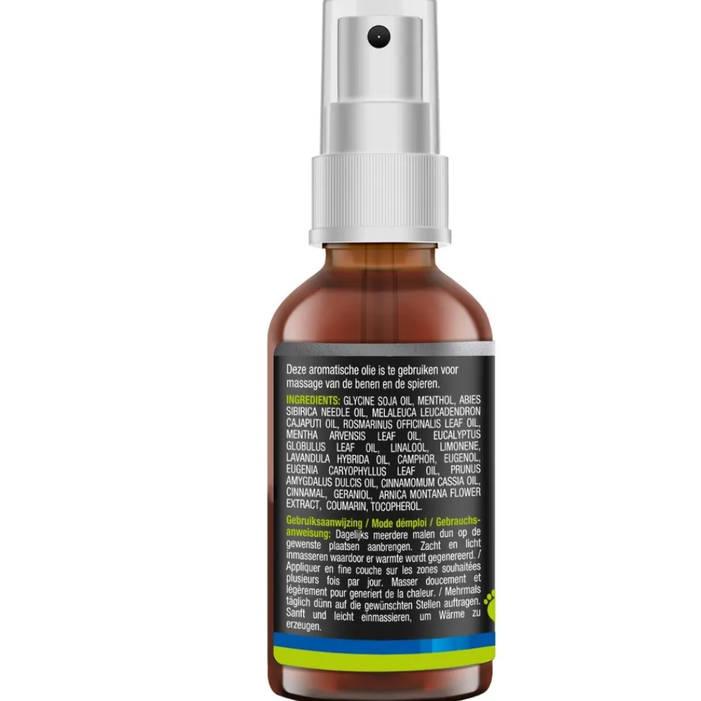 Deze aromatische olie is te gebruiken voor massage van de benen en de spieren.