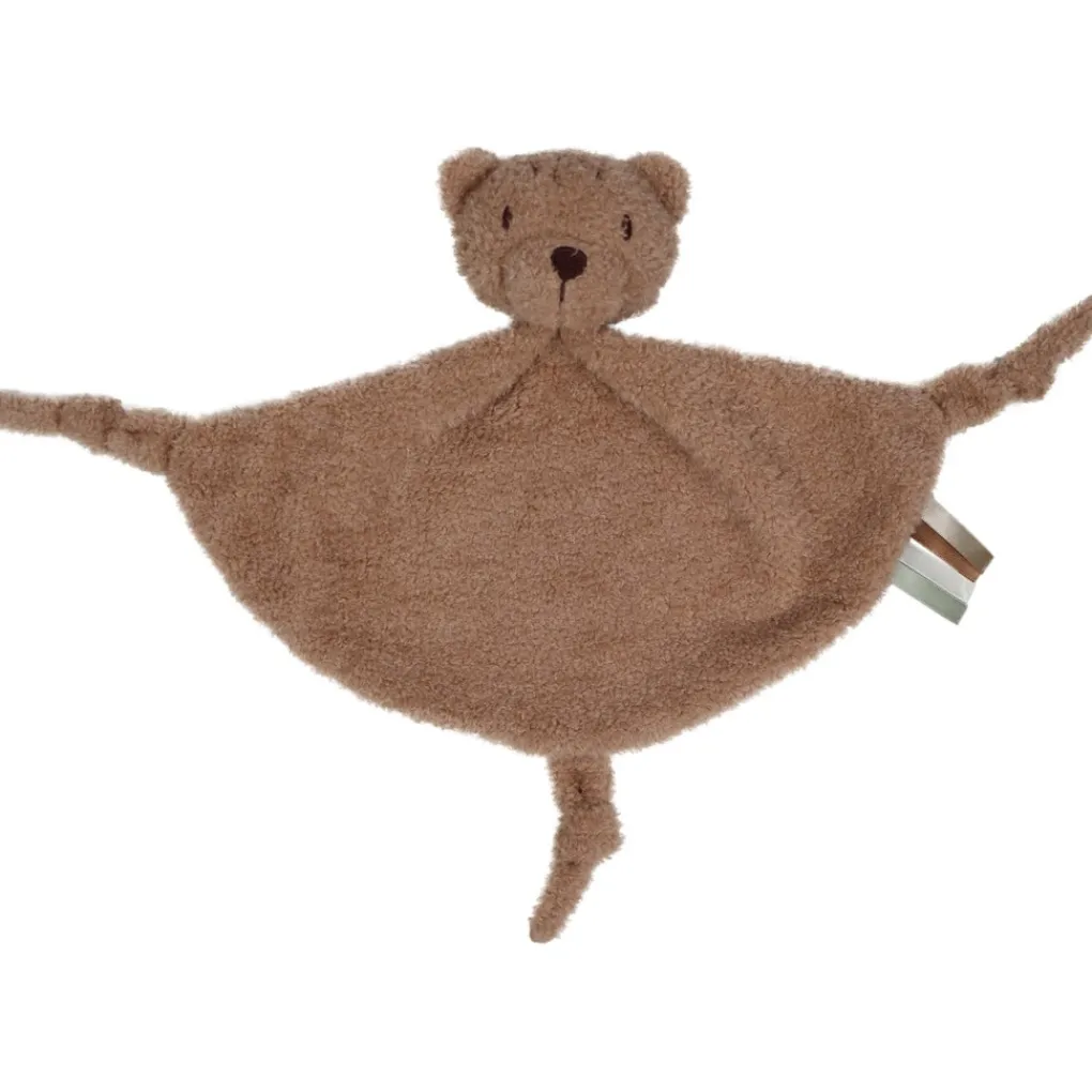 Het doekje is gemaakt van superzacht materiaal en voelt heerlijk aan tegen het gezichtje. De verschillende labeltjes nodigen uit om te ontdekken, vast te pakken en mee te friemelen – dat geeft een vertrouwd gevoel en stimuleert de tastzin van je kindje.