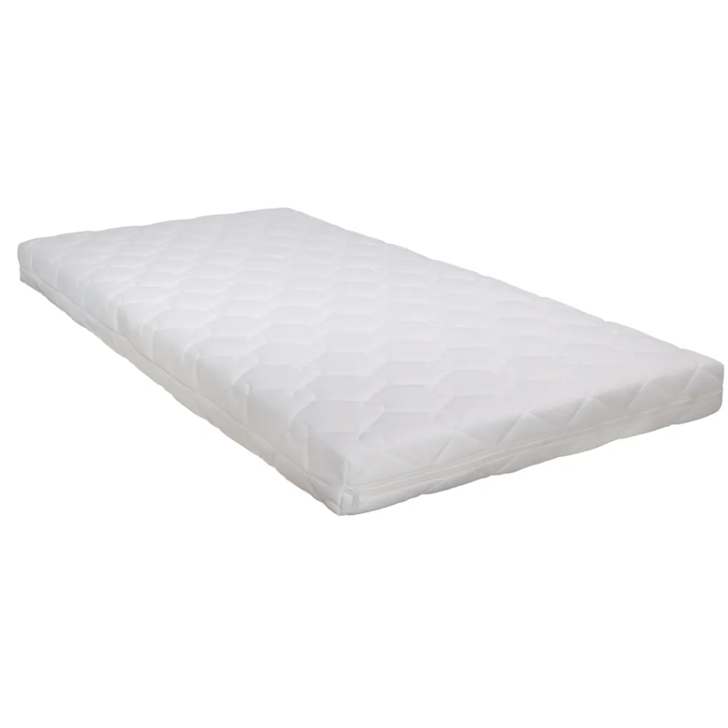 De vulling van het matras bestaat uit polyetherschuim en een laag kokosvezels wat zorgt voor optimale stevigheid en flexibiliteit. Het matras beschikt over ventilatiegaten om vochtvorming en schimmelvorming te voorkomen. Het matras heeft een afneembare hoes die anti-allergisch en anti-mijt is. Is het matras vies geworden? De afneembare hoes is wasbaar op 40℃.