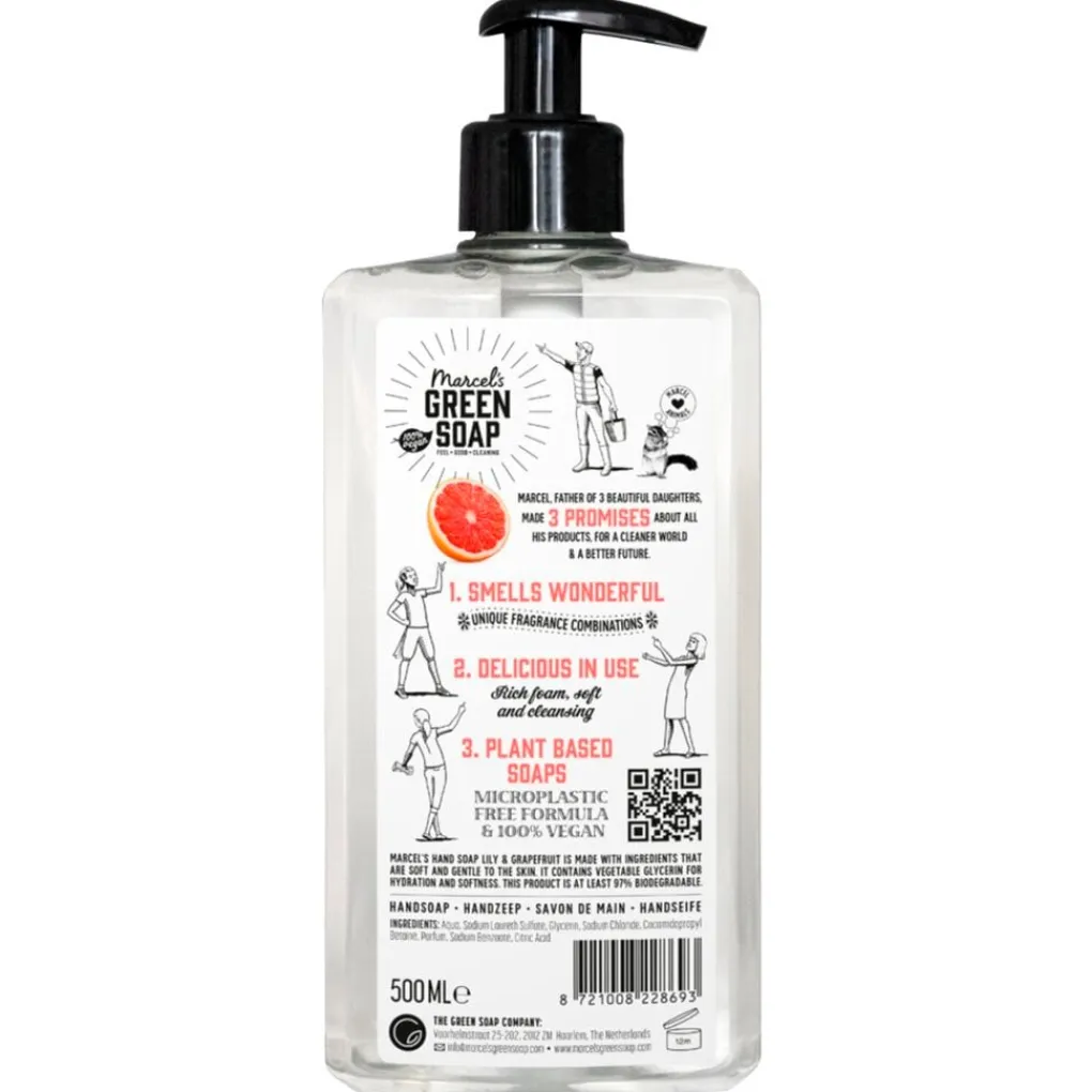 Marcel’s Green Soap Lily & Grapefruit Handzeep bevat extra plantaardige glycerine voor een zachte en gehydrateerde huid.
