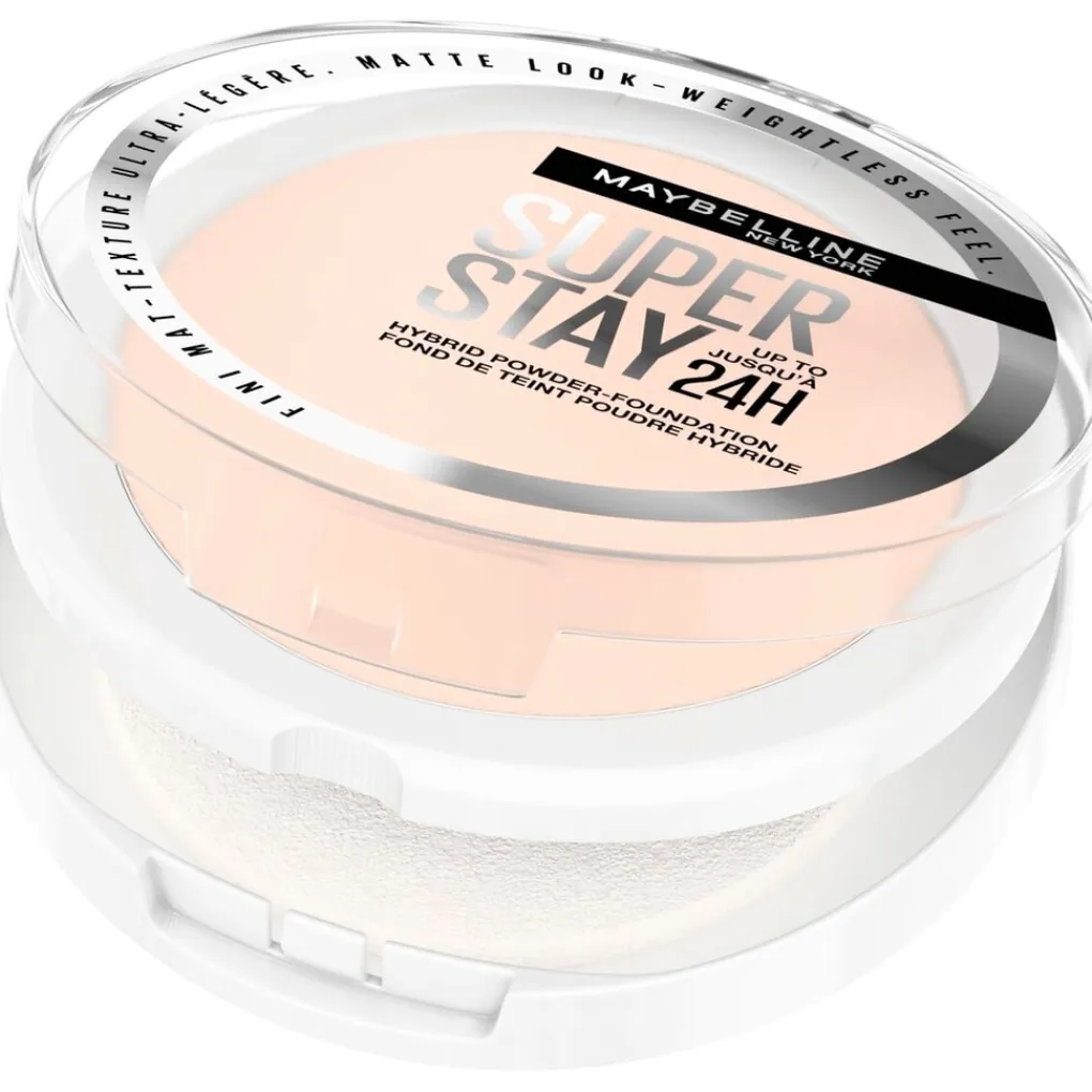 Maybelline New York SuperStay Up To 24HR 3 Hybrid Powder-Foundation biedt tot 24 uur medium dekking en heeft een zachte, matte finish die superlicht aanvoelt. De foundation geeft niet af en is zweet- en waterproof.