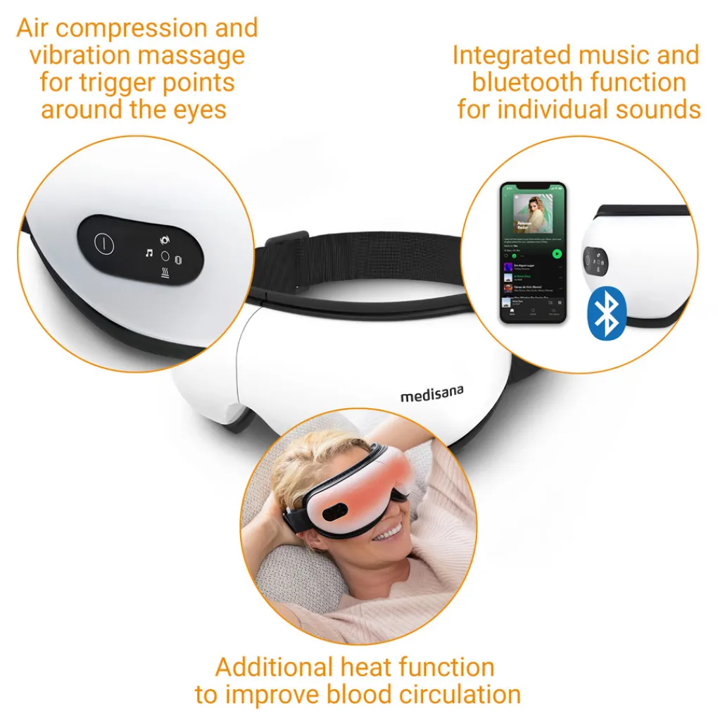 Met vijf verschillende massageprogramma’s kan de toepassing volledig worden afgestemd op uw eigen behoeften. De extra warmtefunctie stimuleert de bloedsomloop en kan helpen om hoofdpijn, vermoeide ogen en zwellingen te verminderen. Regelmatig gebruik zorgt voor aangename ontspanning en ondersteunt het herstel van de oogspieren, perfect voor een korte onderbreking van de dagelijkse stress.