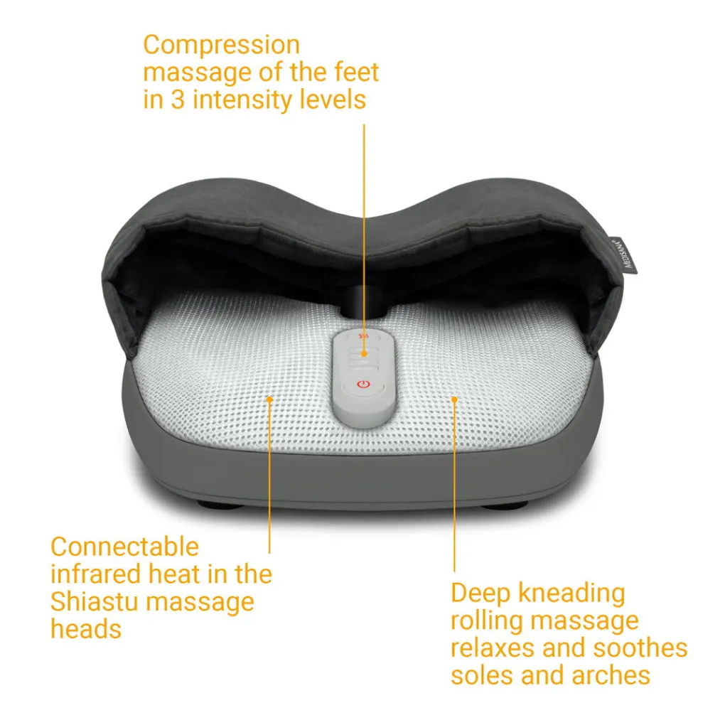 De FM 885 van Medisana biedt een compressiemassage van de bovenkant van de voeten in drie verschillende intensiteitsniveaus.