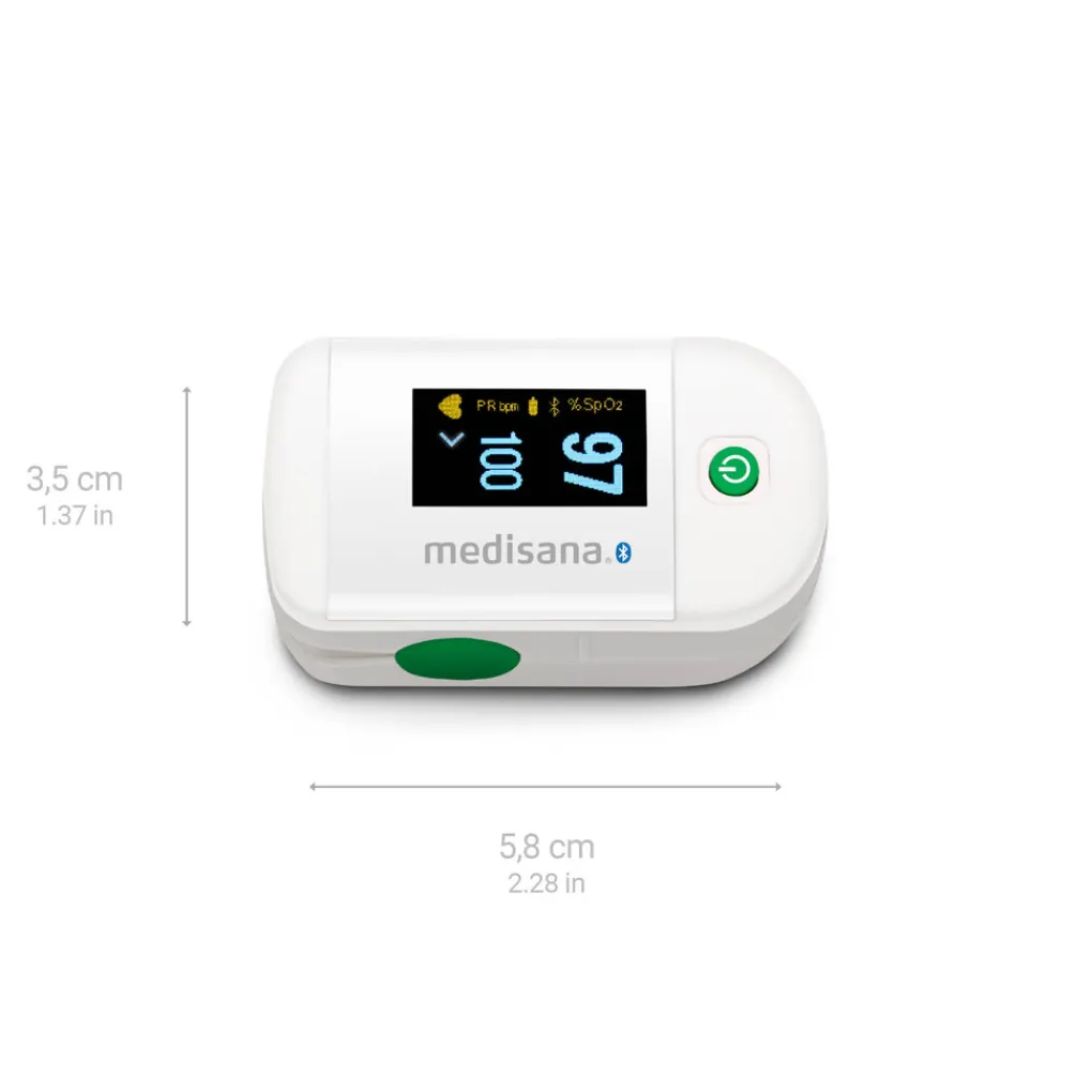 De medisana PM 100 pulsoximeter meet betrouwbaar en nauwkeurig de zuurstofverzadiging in het bloed en de hartslag. De twee gemeten waarden kunnen in vier verschillende perspectieven als staafjes of golven worden weergegeven op het eenvoudig af te lezen OLED-scherm. Het apparaat schakelt zichzelf na acht seconden automatisch uit, waardoor de batterij wordt gespaard. Dit is slechts een van de voordelen van dit medische apparaat van Medisana.