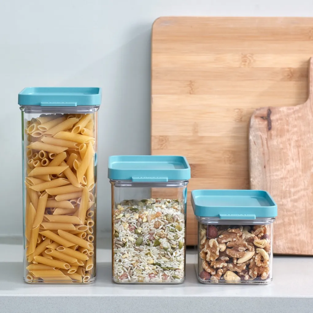 Je favoriete etenswaren heb je graag op voorraad. Deze Omnia voorraaddozen bieden de perfecte oplossing voor het bewaren van heerlijke koffie, smaakvolle pasta, knapperige cornflakes of een kilo meel. De bewaardozen kunnen tegen een stootje en sluiten lucht- en aromadicht af, waardoor je etenswaren langer vers blijven. Bovendien zijn de dozen gemakkelijk te stapelen voor ruimtebesparing en vaatwasmachinebestendig. De Mepal bewaardozen zijn ontzettend praktisch in je keukenkastje en door de deksels in stijlvolle kleuren staan ze ook prachtig op de keukenplank.