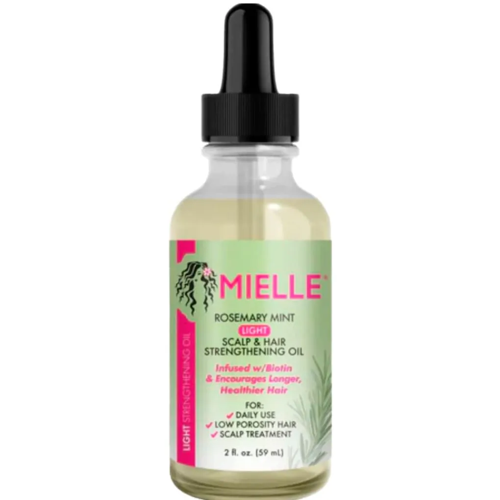 Mielle Light Rosemary Mint Scalp & Hair Strengthening Oil is verrijkt met rozemarijn, munt en biotine om je haar en je hoofdhuid te stimuleren.